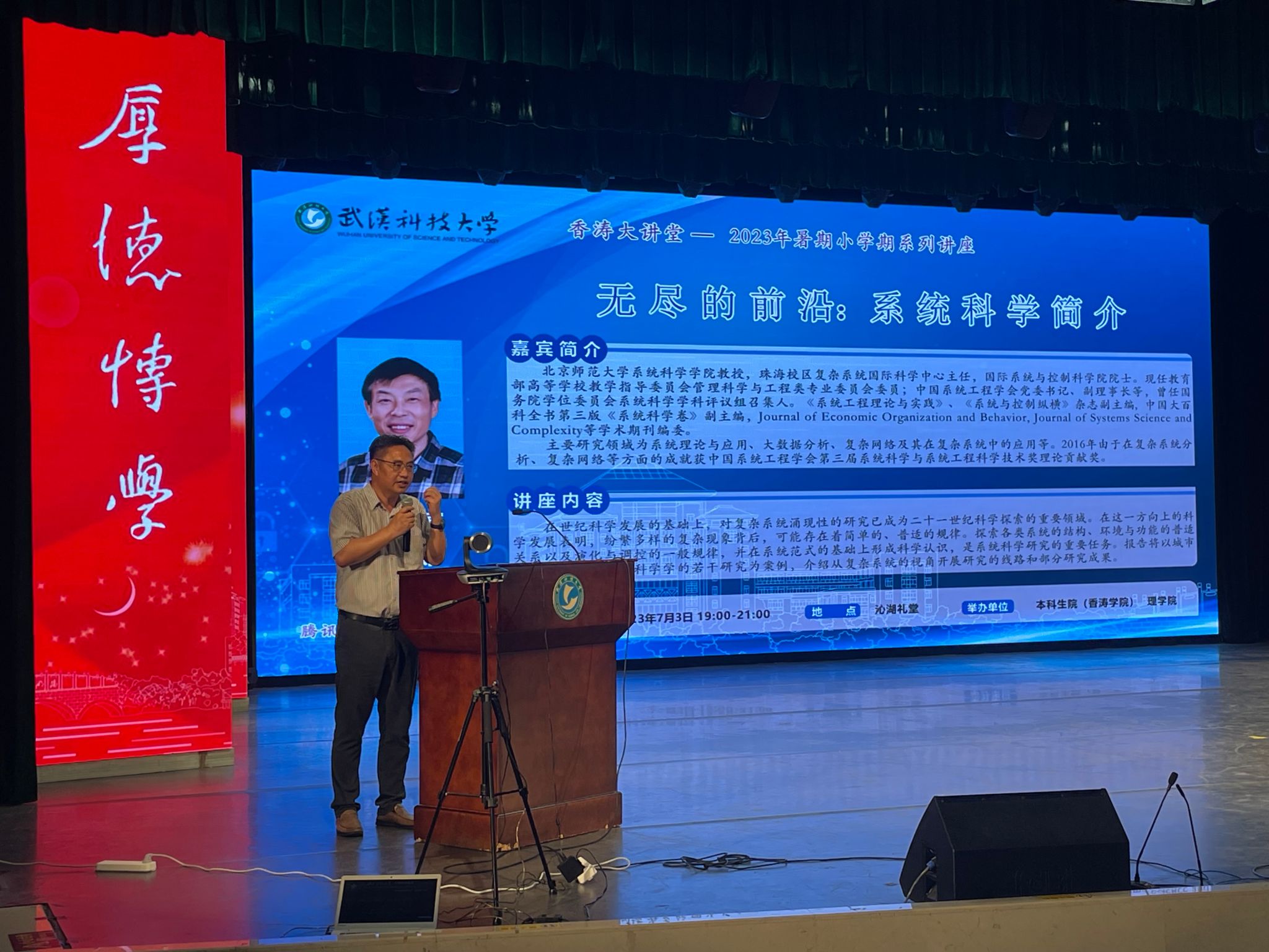 (通讯员苏青青 申杨)7月3日晚19:00,北京师范大学狄增如教授受3003新葡的京集团邀请在沁湖礼堂为我校师生作学术报告,题目为“无尽的前沿:系统科学简介”。3003新葡的京集团领导及师生代表、香涛学院全体师生出席讲座。讲座由本科生院副院长、香涛学院院长(兼)张志清教授主持。