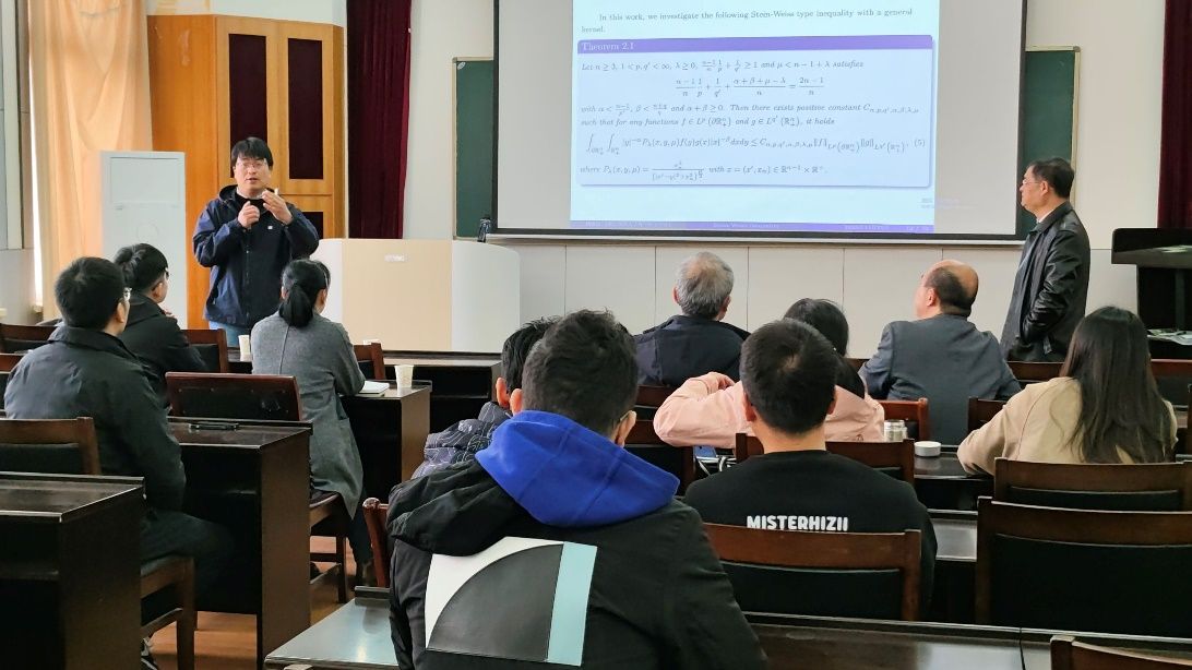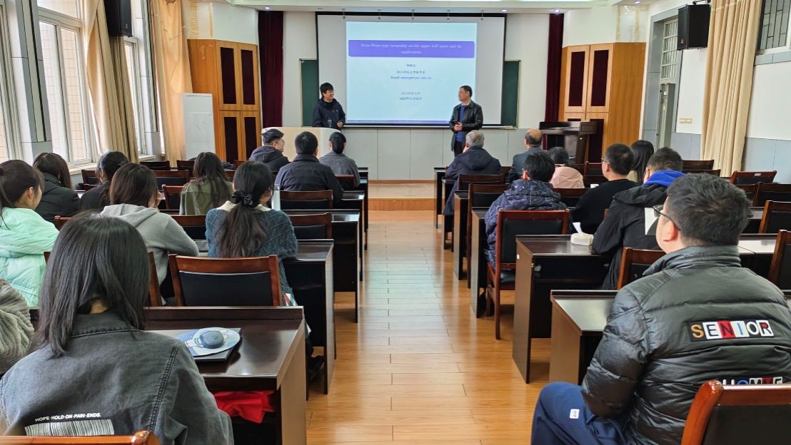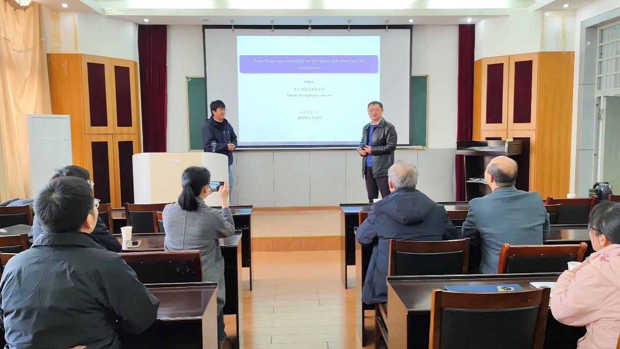 (通讯员虞中华)11月25日,浙江师范大学数学科学学院院长杨敏波应新葡的京官网邀请,在教二楼五楼学术报告厅作题为“Stein-Weiss type inequality on the upper half space and its applications”的学术报告。本次报告会由新葡的京官网院长丁义明教授主持,新葡的京官网部分教师及研究生参加。