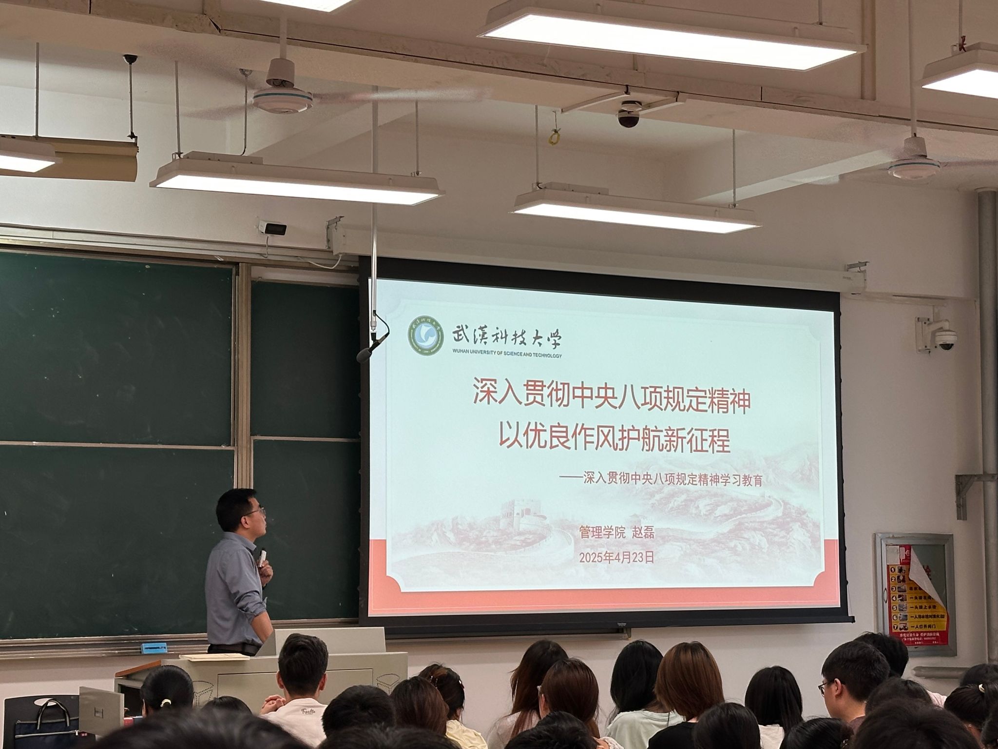 本次培训特别邀请赵磊作题为《深入贯彻中央八项规定精神,以优良作风护航新征程》的专题教育。赵磊从“作风建设的历史逻辑”“八项规定的核心要义”切入,结合党史案例与新时代要求,剖析“四风”问题的危害性,并强调:“党员干部需以‘永远在路上’的清醒,将作风建设转化为服务群众的行动自觉,以优良作风为新征程保驾护航。”