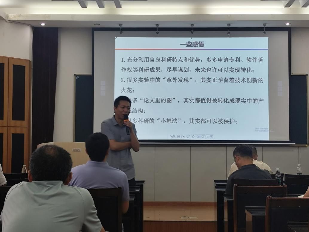 张威老师分享了专利申请和成果转化的相关流程以及个人的心得体会,并简要介绍了学校的相关政策。