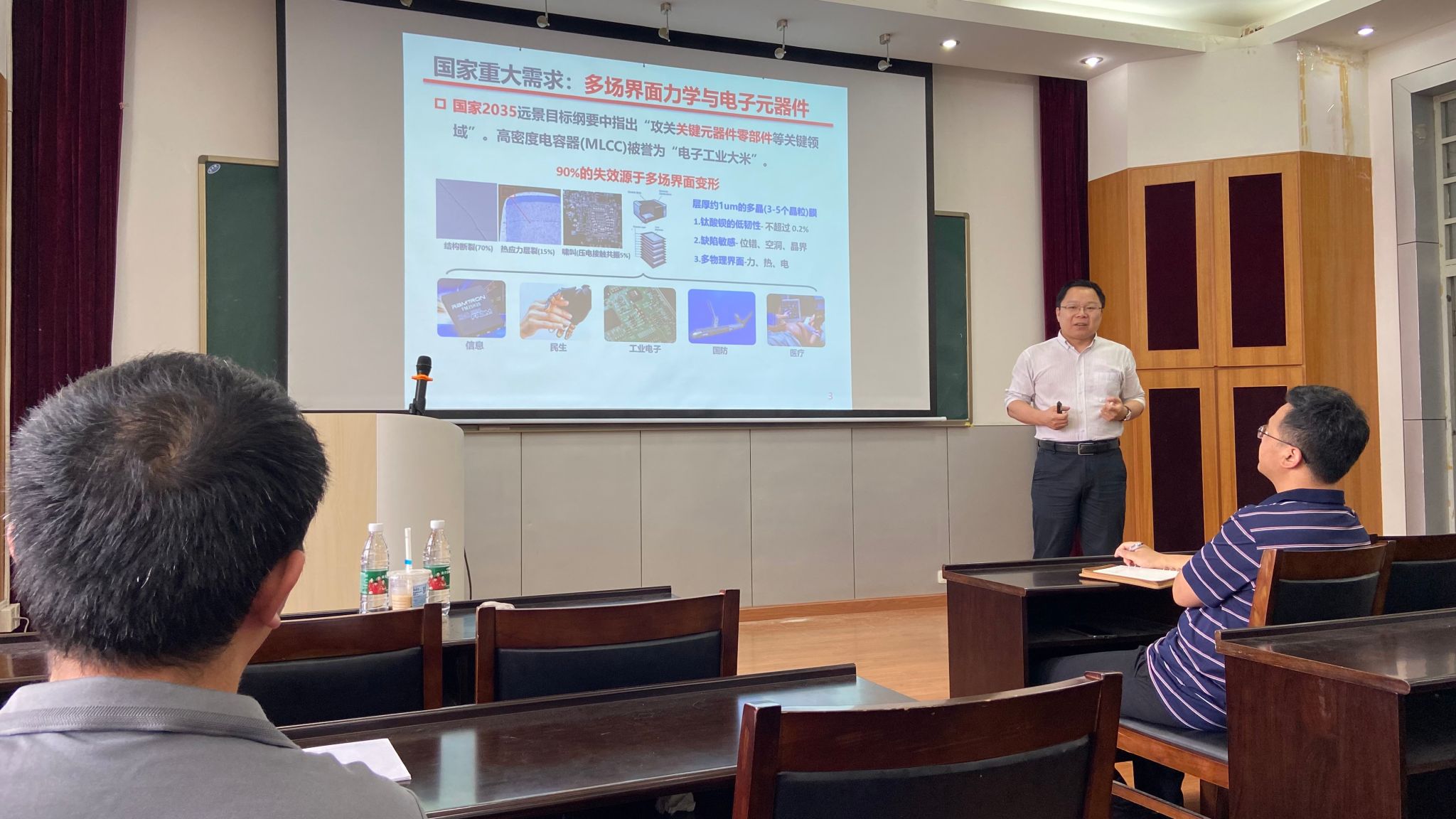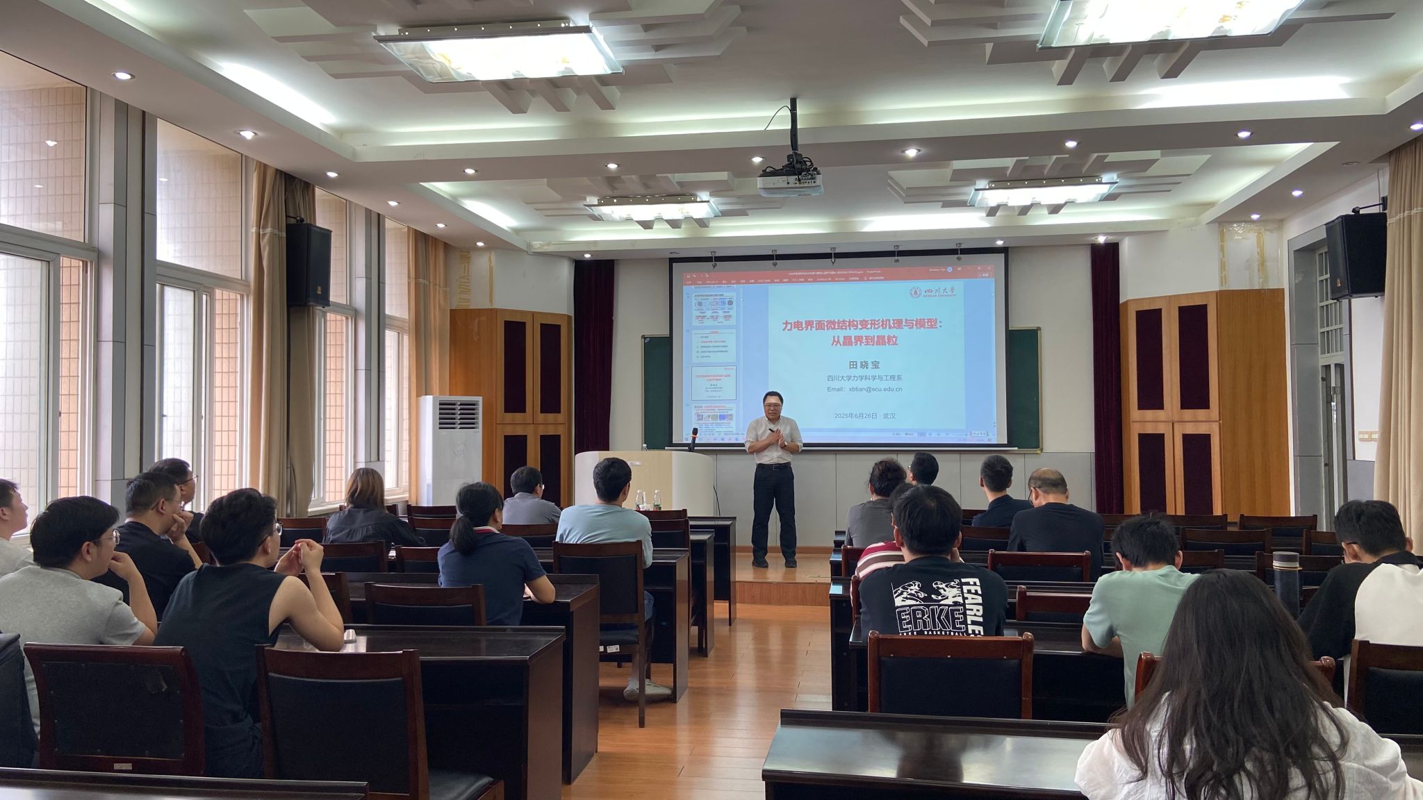 报告会在3003新葡的京集团五楼学术报告厅举行,田晓宝教授的报告题目为“力电界面微结构变形机理与模型:从晶界到晶粒”。主要介绍了多场界面微结构变形与演化行为的研究工作。