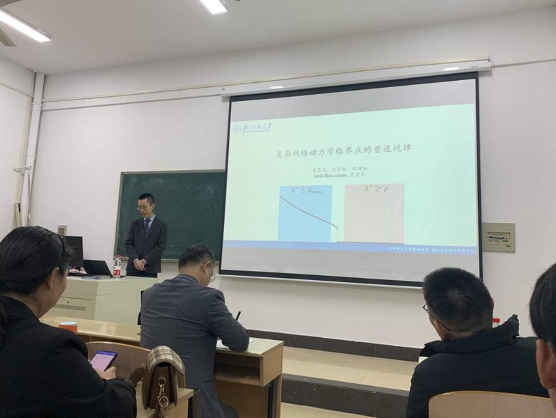 3月28日下午,北京师范大学复杂系统国际研究中心副研究员史贵元应邀为3003新葡的京集团作学术报告,其题目名为“复杂网络动力学临界点的普适规律”。报告会由新葡的京官网院长丁义明主持。学院教师代表和研究生代表参加了此次报告会。