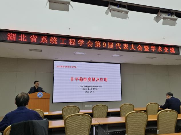 此外,会议还邀请了王红卫、胡铁生、丁义明、余谦、赵勇和邓世名六位专家学者作学术报告,介绍系统工程领域内的前沿科研进展。其中,丁义明教授在会上作学术报告《非平稳性度量及其应用》,讲述了平稳与非平稳的区别,提出了非平稳性度量NS,并介绍了非平稳性度量的定义,算法及其在模型选择、变点检测、保密匹配和数字印章方面的应用。