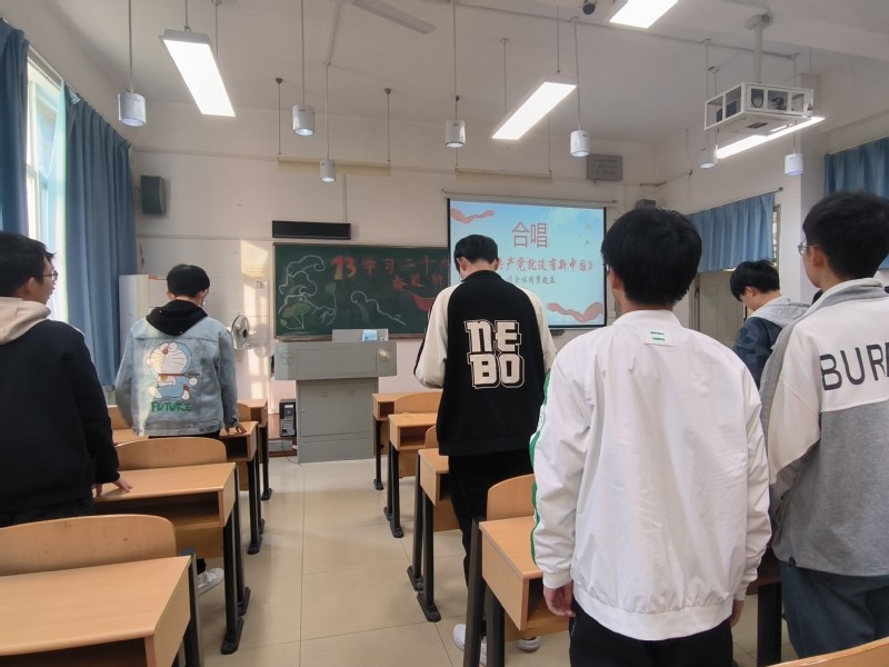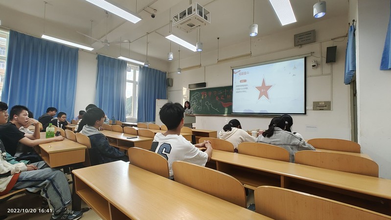 全班共34名同学参加了主题班会活动。班会在主持人陈焯对中共二十大的介绍中拉开序幕,随后共同演唱了《没有共产党就没有新中国》。演唱过后,由陈焯从“二十大新征程”“中坚力量”“牢记嘱托”“砥砺奋斗”四个层面来讲述“个人如何将青春奋斗与国家奋斗的伟大历程相结合,让青春在时代背景下绽放绚丽之花”。同学们也了解到了中国共产党的中心任务、基本原则,对中国共产党的伟大贡献做出了高度赞扬。