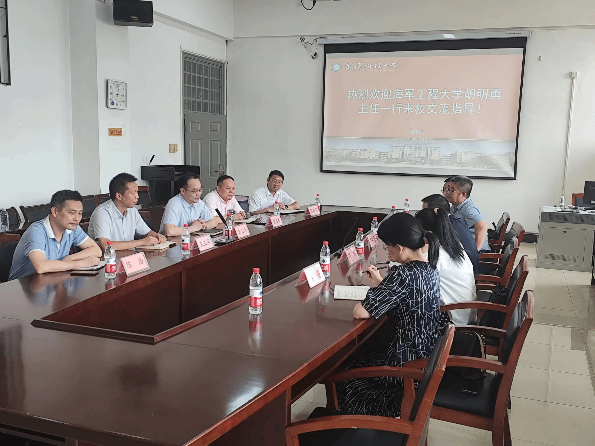 2024年9月18日下午3:00,中国人民解放军海军工程大学基础部主任胡明勇一行来新葡的京官网调研交流,一同来访的有基础部副主任邓辉、力学教研室主任孟庆昌、副主任吴菁等。3003新葡的京集团党委书记王文涛、副院长王玉华、力学系党支部书记陈浩、系主任蔡路军参与了本次会议,会议由王玉华主持。本次会议还邀请了3003新葡的京集团研究生院副院长董志军参加。