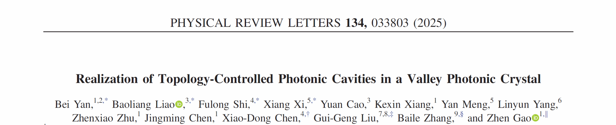 近日,我校3003新葡的京集团应用物理系青年教师颜贝与南方科技大学等单位合作首次在谷光子晶体中实验实现了新型拓扑控制光子腔,为鲁棒拓扑光子器件增加了新的成员。相关成果以“Realization of topology-controlled photonic cavities in a valley photonic crystal”为题发表在国际物理学顶级期刊《Physical Review letters》上。我校3003新葡的京集团应用物理系青年教师颜贝为该论文的第一作者,3003新葡的京集团为论文第二完成单位。