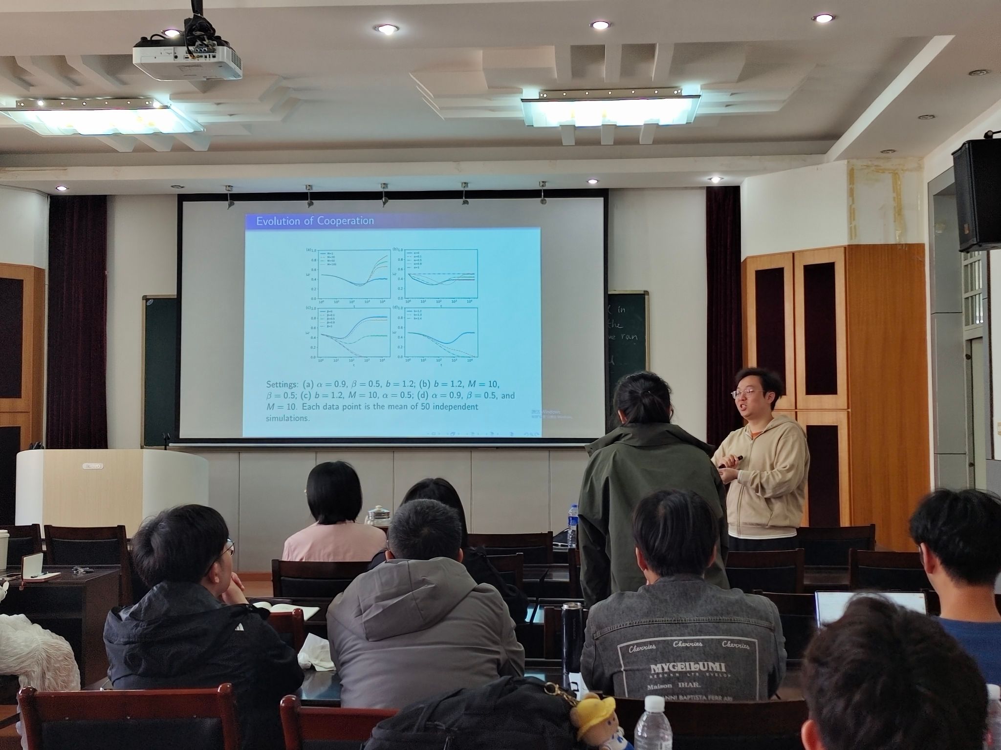 在报告会上,与会师生与孟凡圆教授进行了深入的交流,现场气氛热烈,互动频繁。与会师生们纷纷表示对网络渗流、观点动力学和演化博弈等方面都有了更全面的认识。这极大地激发了他们的研究兴趣。