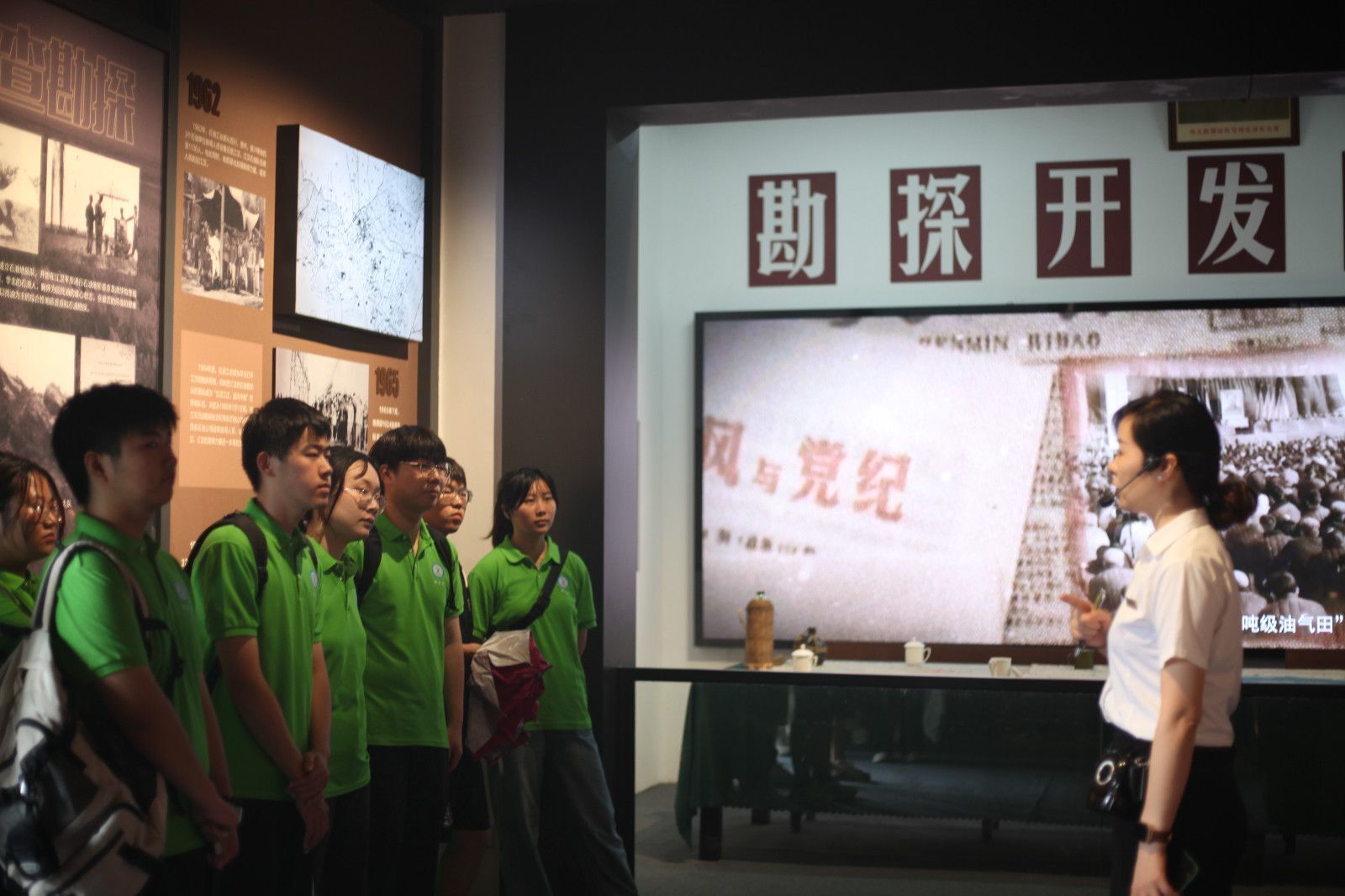 实践队带队老师毕浩洋向实践队成员们讲述了老一辈人如何用不到三年时间就初步建成我国南方重要的石油勘探开发基地的艰难历程,老一辈人苦干实干的精神让在场的实践队成员都深受感动。