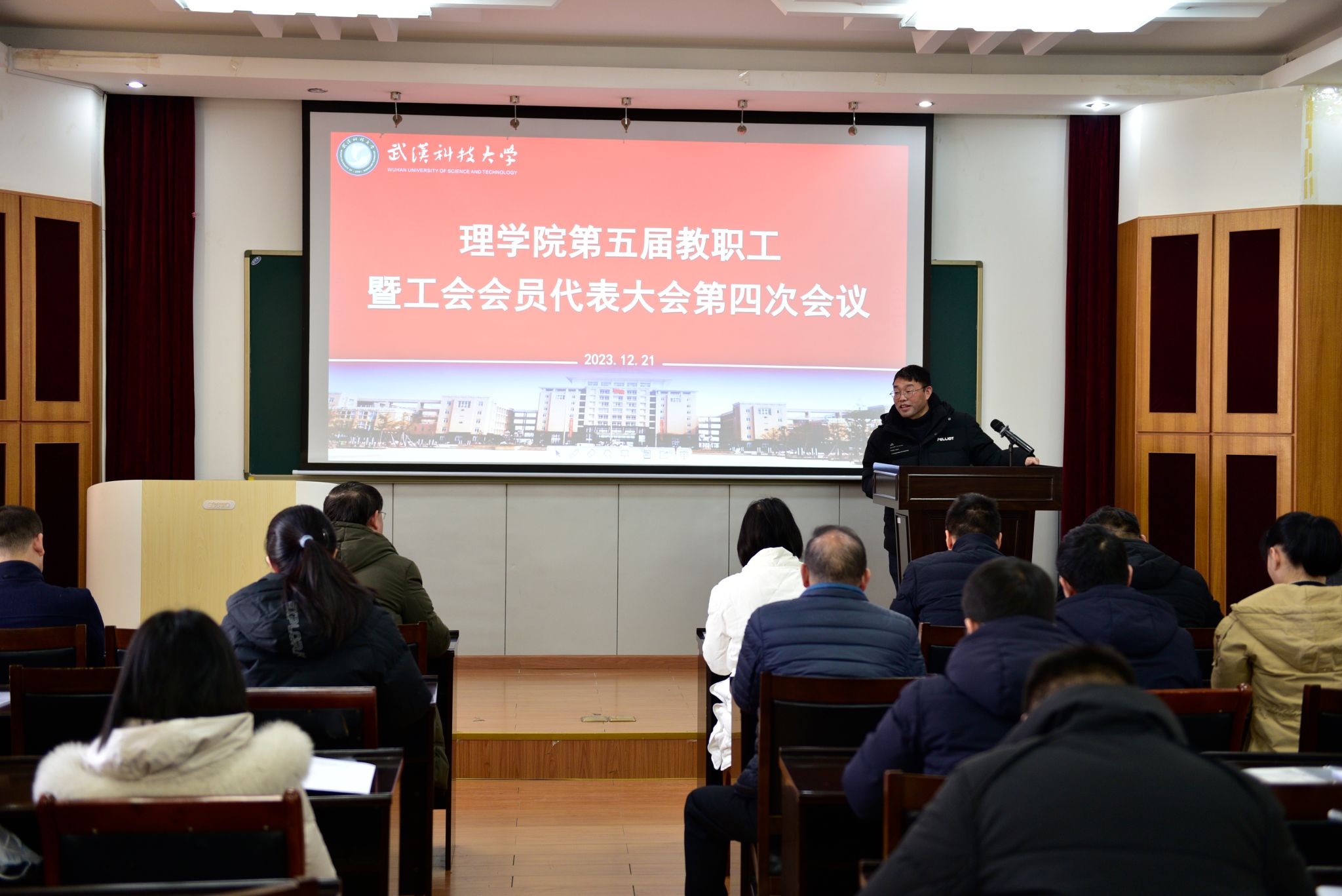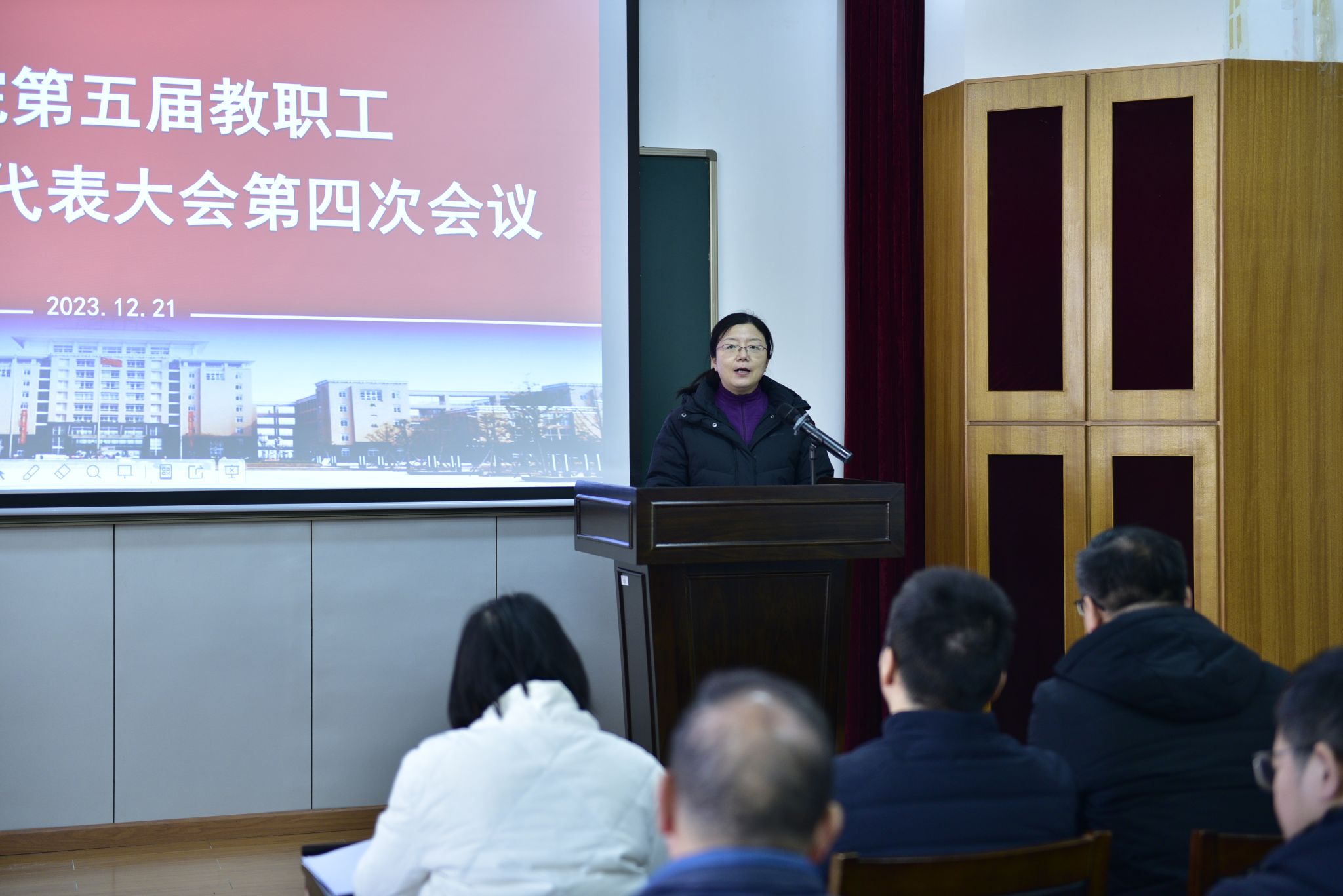 (通讯员:毕浩洋 张迪)12月21日,3003新葡的京集团第五届教职工暨工会会员代表大会第四次会议在黄家湖教二楼五楼学术报告厅隆重召开。全体院领导、正式代表和列席代表出席大会。