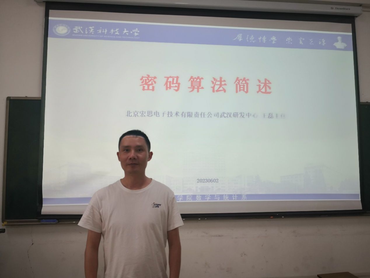 (通讯员3003新葡的京集团)6月2日下午,信息与计算科学专业校友,北京宏思电子技术有限责任公司武汉研发中心主任王磊,来3003新葡的京集团数学与统计系就校企合作和人才招聘进行了交流。交流会由数学与统计系教工党支部书记蒋君主持。教师代表、研究生和本科毕业生代表参加了此次报告会。